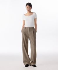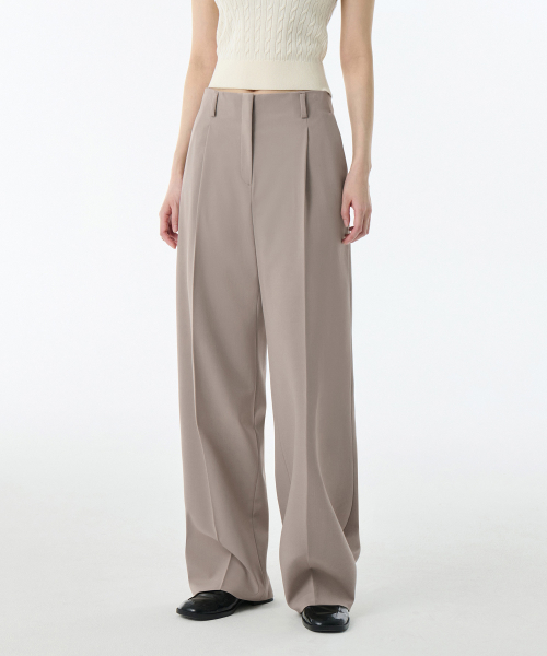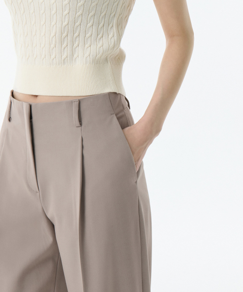 우먼즈 웨이스트밴들리스 와이드 슬랙스 [더스티 베이지]