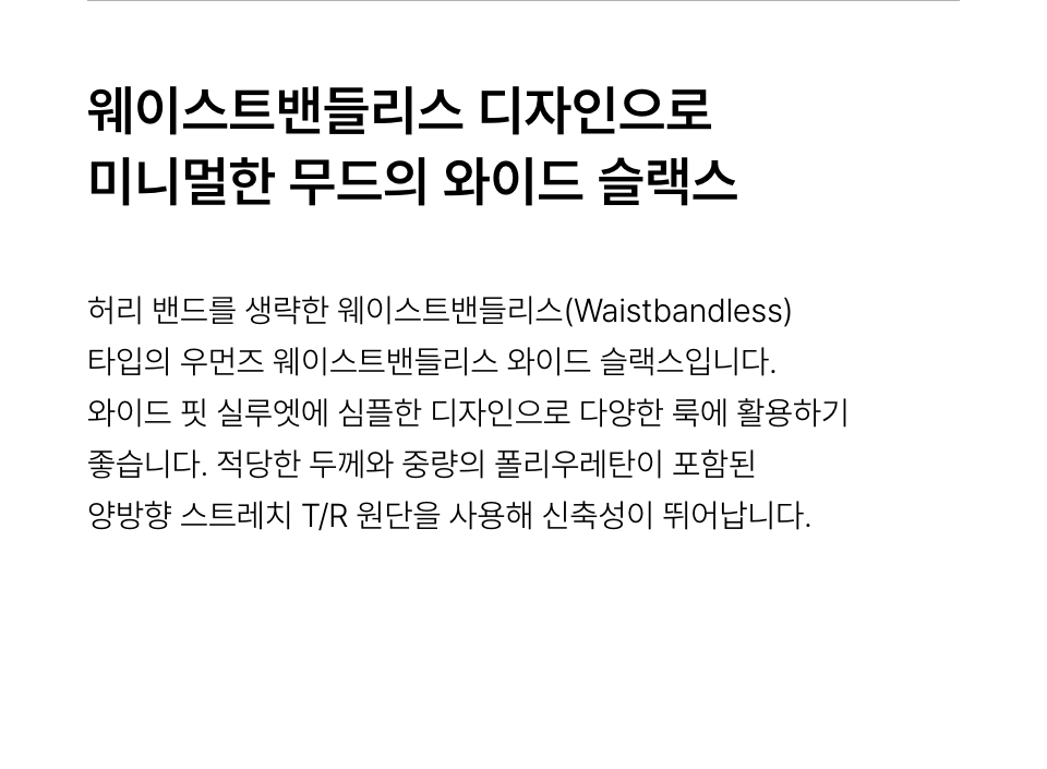 우먼즈 웨이스트밴들리스 와이드 슬랙스 [블랙]