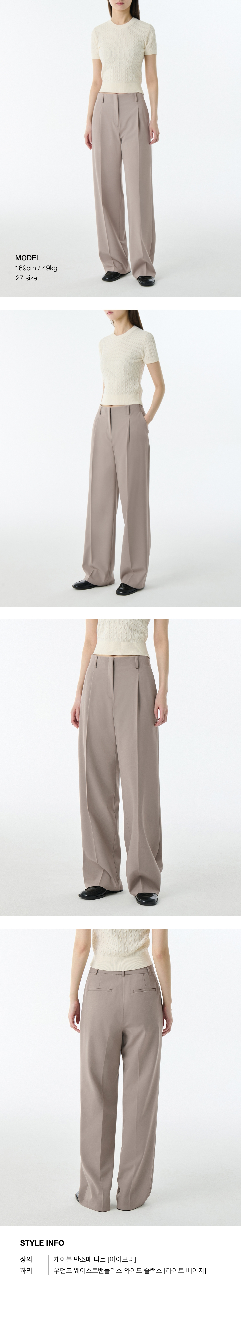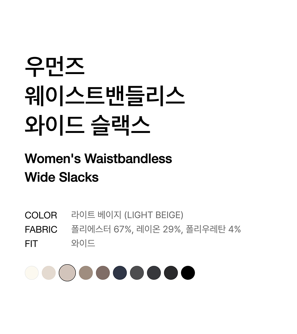 우먼즈 웨이스트밴들리스 와이드 슬랙스 [라이트 베이지]