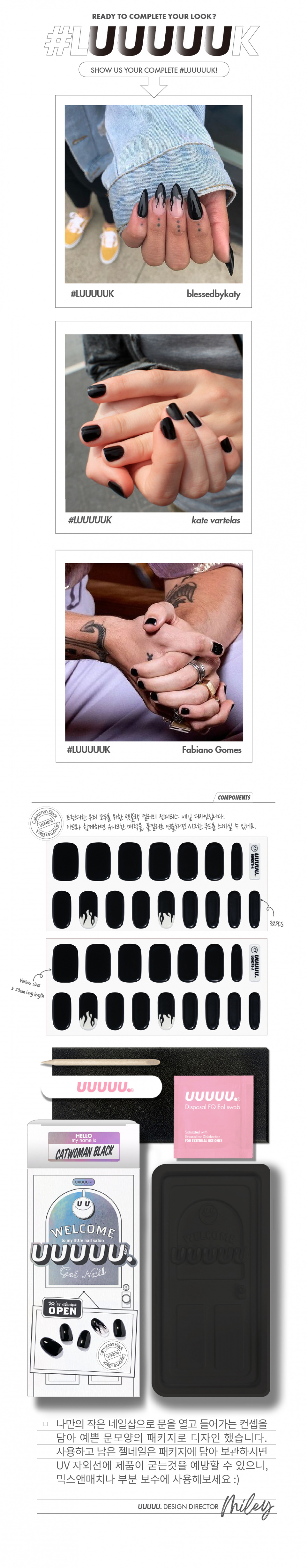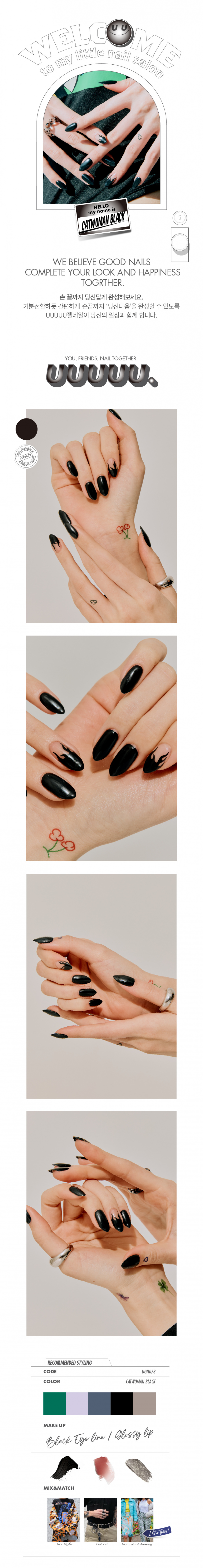 유유유유유(UUUUU.)는 'express U, for U, love U, with U UUUUU.'라는 슬로건 아래, 당신을 위한 쉽고 혁신적이며 감각적인 네일 제품을 선보이는 브랜드입니다.
