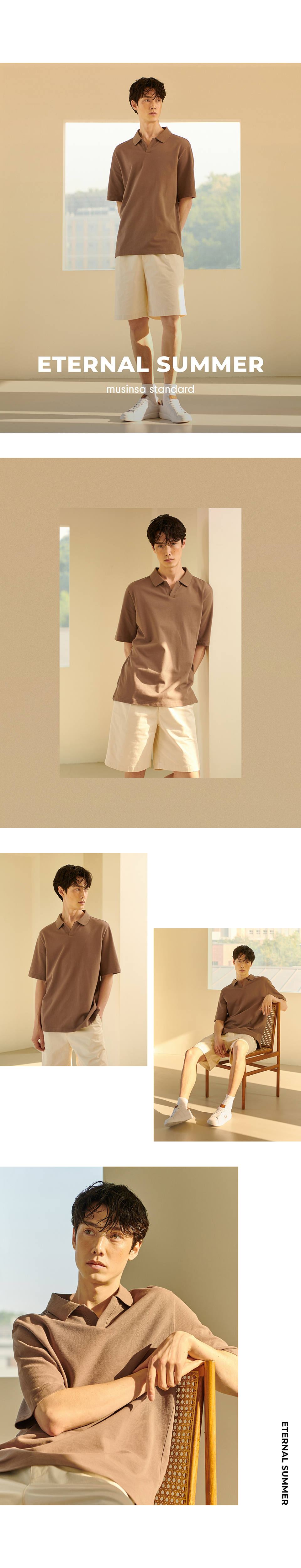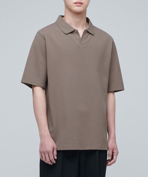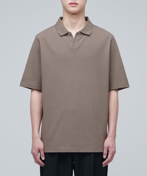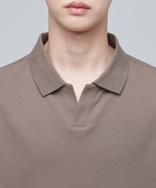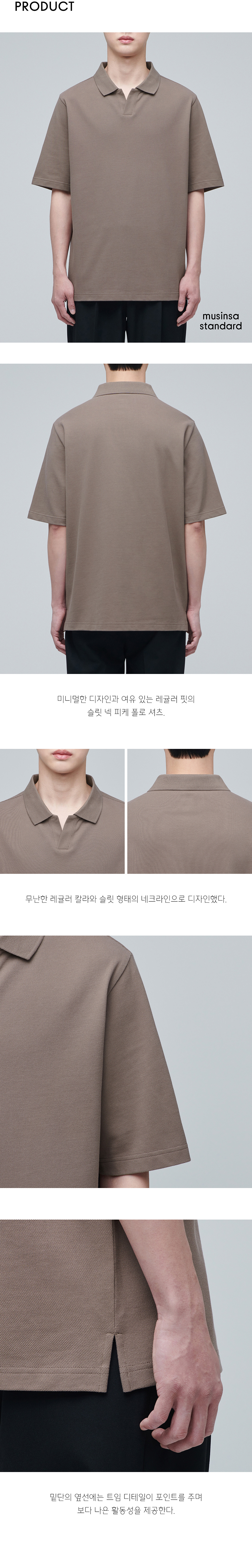 슬릿 넥 피케 폴로 셔츠 [모카]