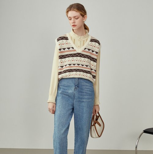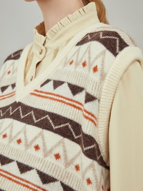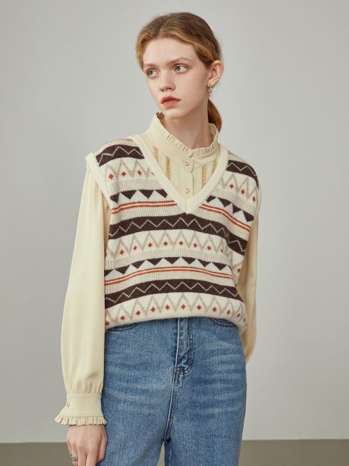 Wendy pattern knit vest_beige