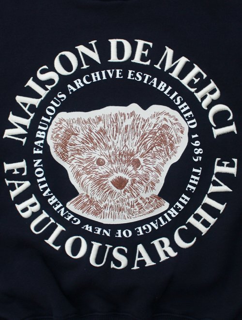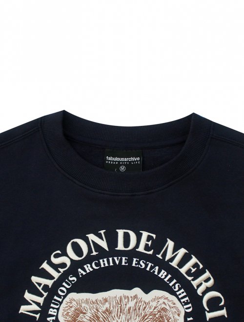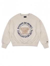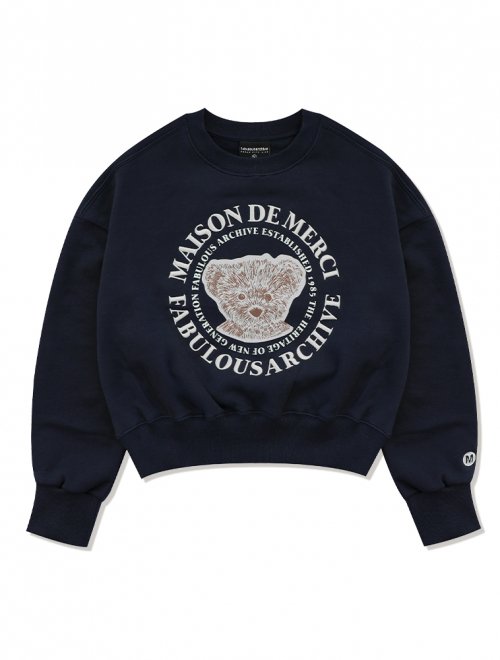 [기모선택]우먼즈 크롭 베어프렌즈 엠보자수 맨투맨 오트밀네이비(FCB3TS355W)