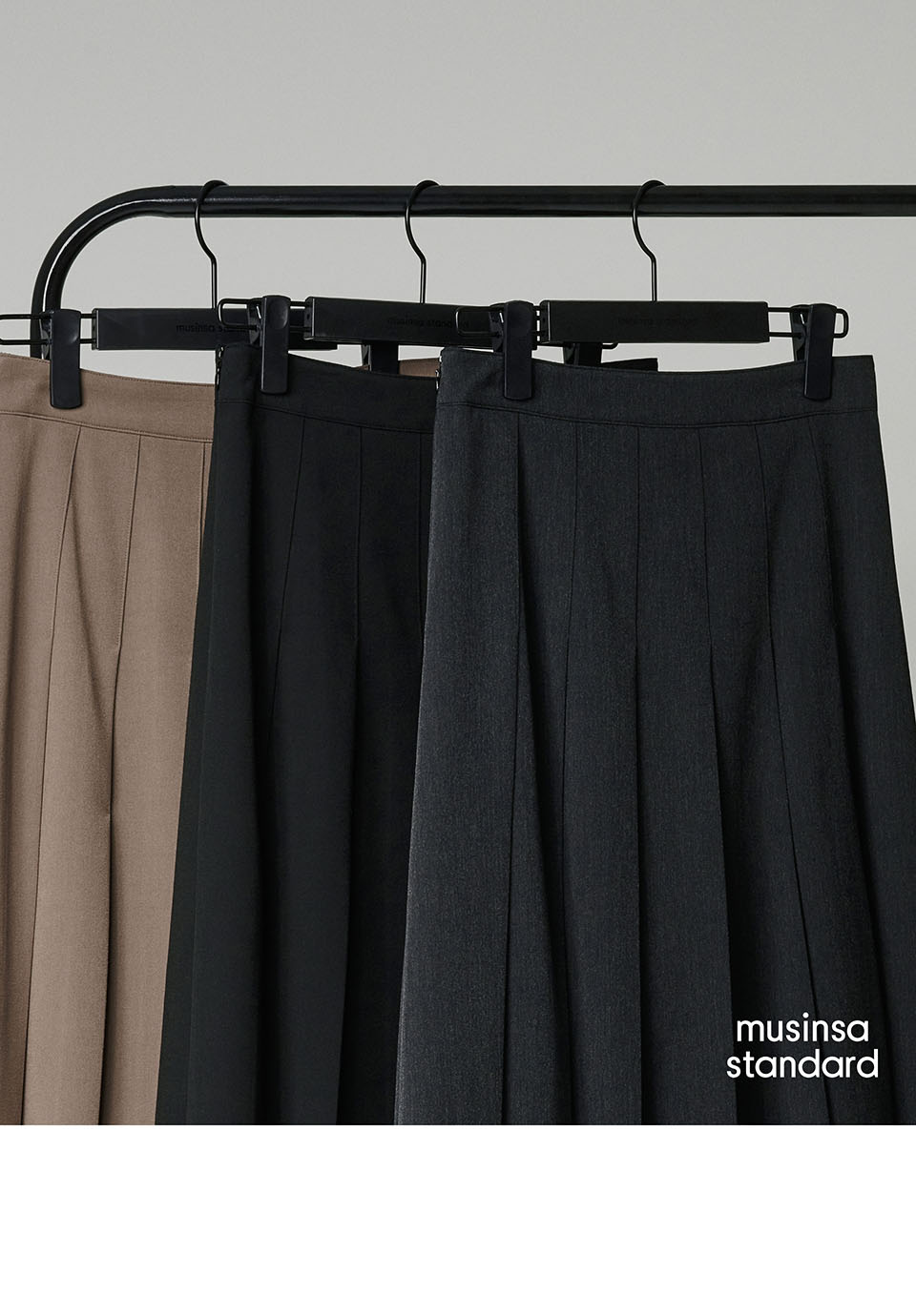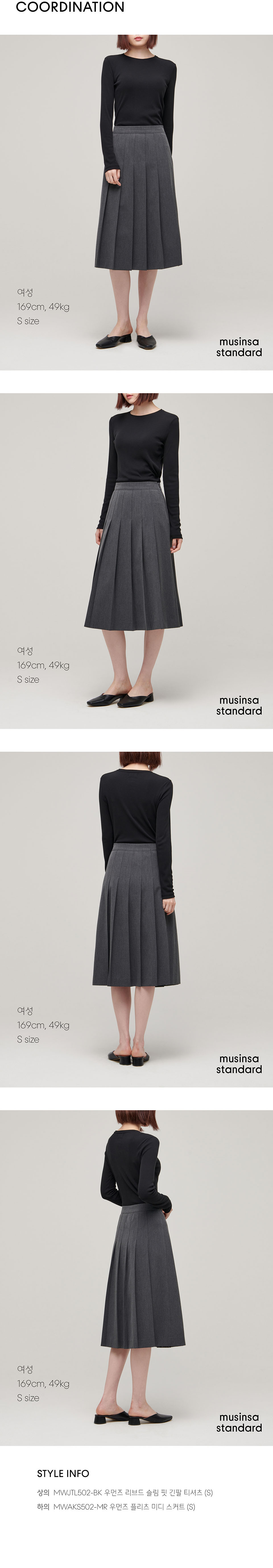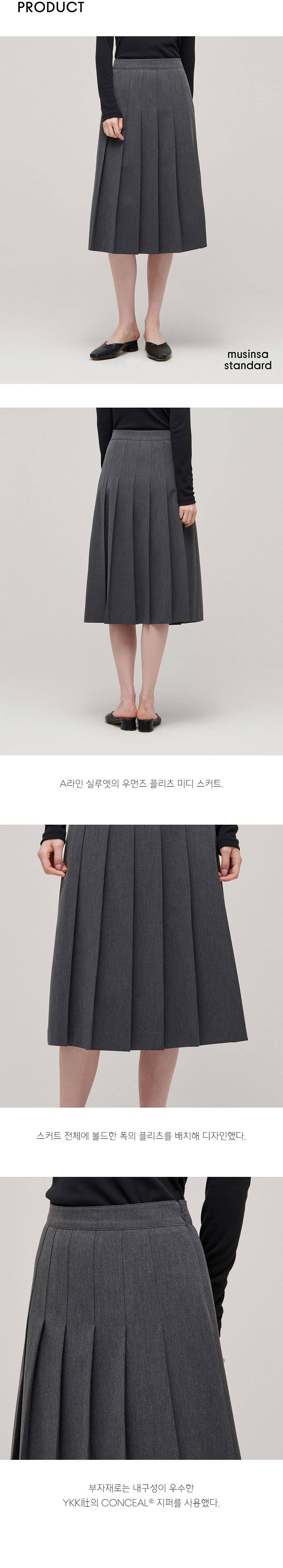 우먼즈 플리츠 미디 스커트 [차콜 그레이]
