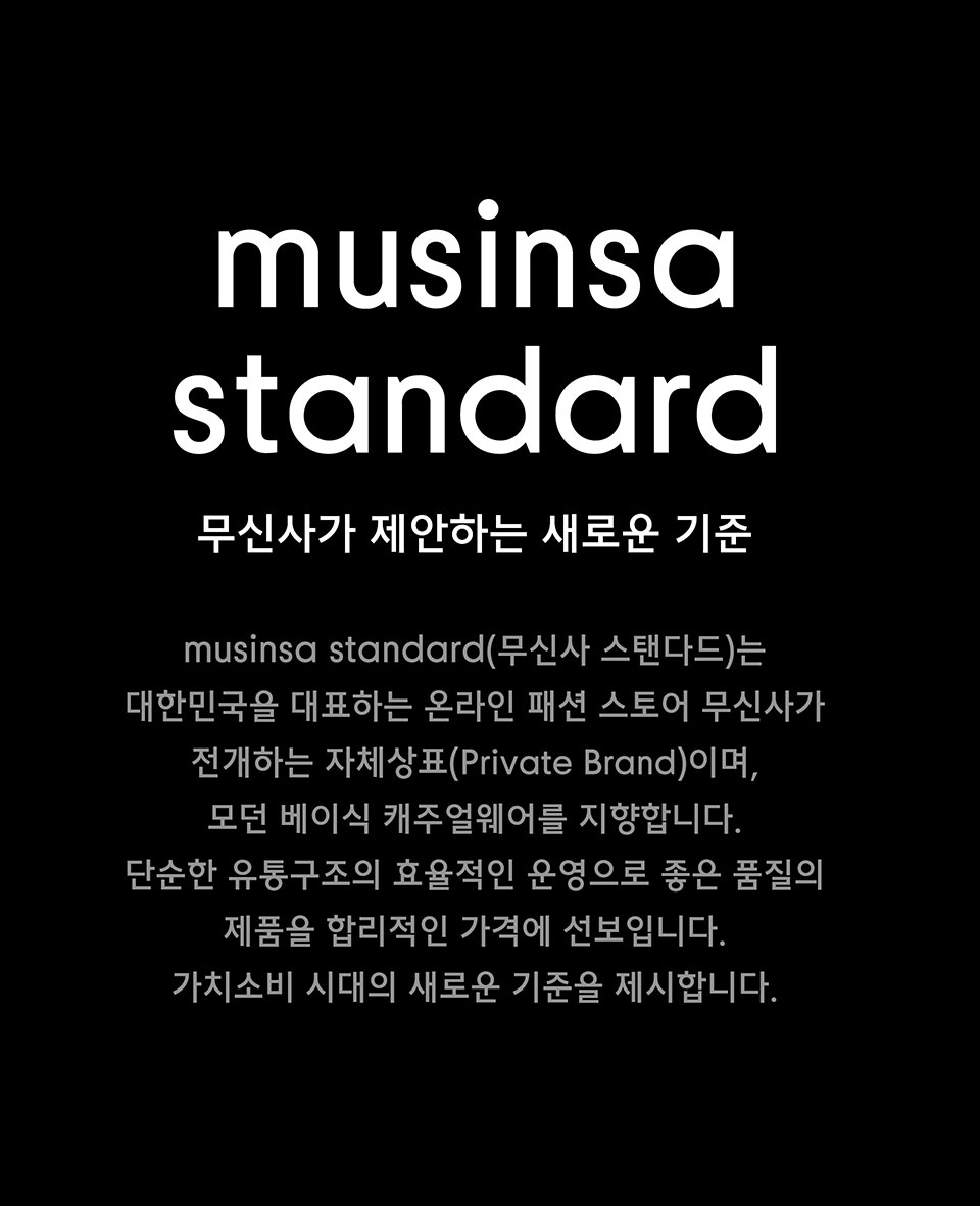무신사 스탠다드 우먼(MUSINSA STANDARD WOMAN)는 대한민국을 대표하는 온라인 패션 스토어 무신사가 전개하는 자체상표(Private Brand)이며, 모던 베이식 캐주얼웨어를 지향합니다. 단순한 유통구조의 효율적인 운영으로 좋은 품질의 제품을 합리적인 가격에 선보입니다. 가치소비 시대의 새로운 기준을 제시합니다.
