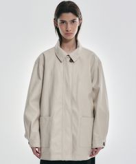 HIDDEN BUTTON MIDI LEATHER JACKET_CREAM