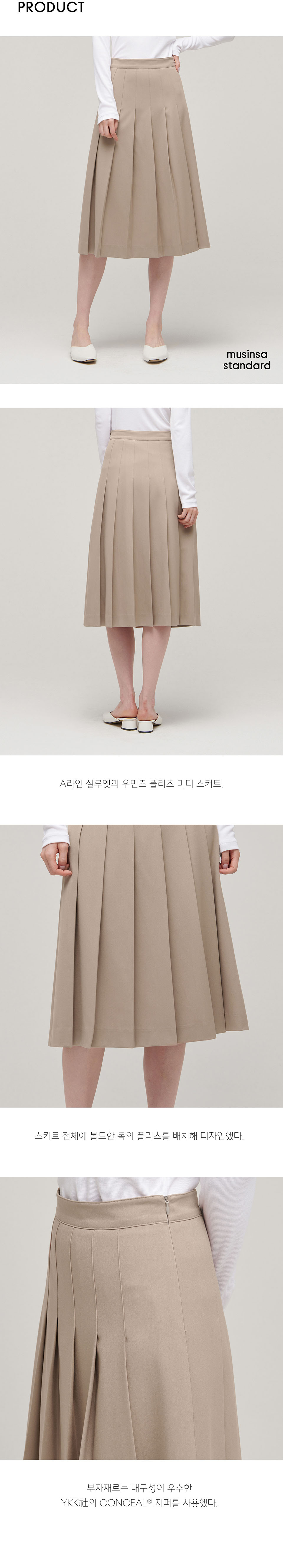 우먼즈 플리츠 미디 스커트 [베이지]