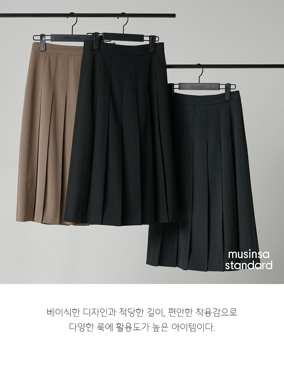 우먼즈 플리츠 미디 스커트 [차콜 그레이]
