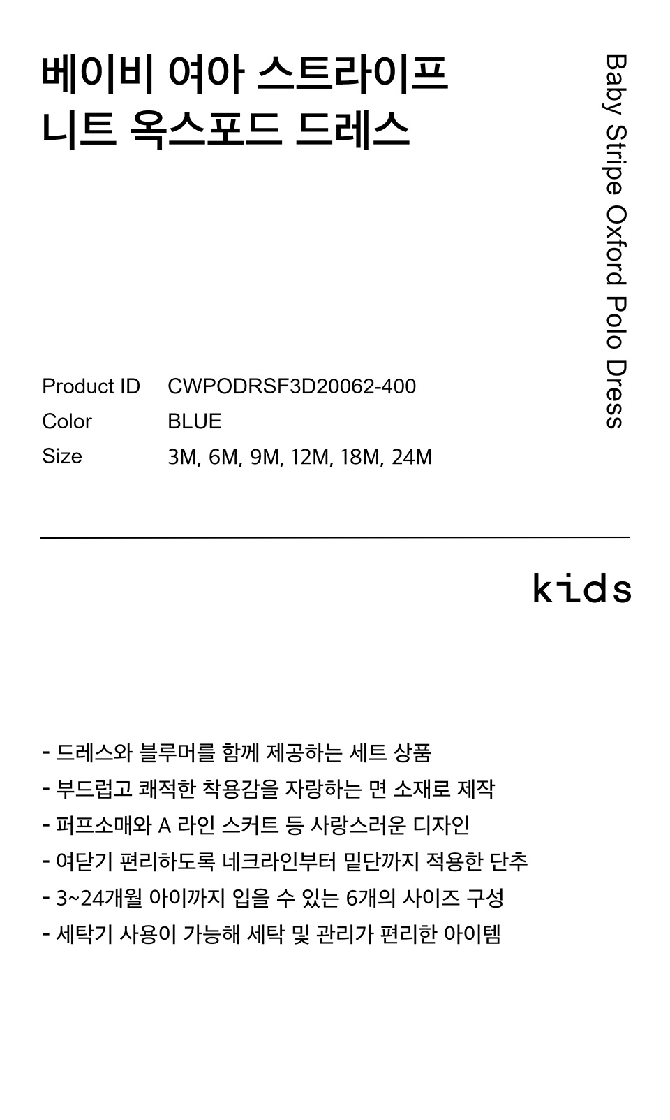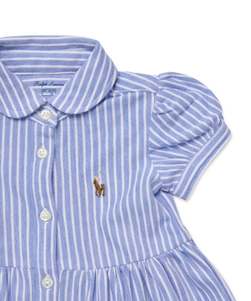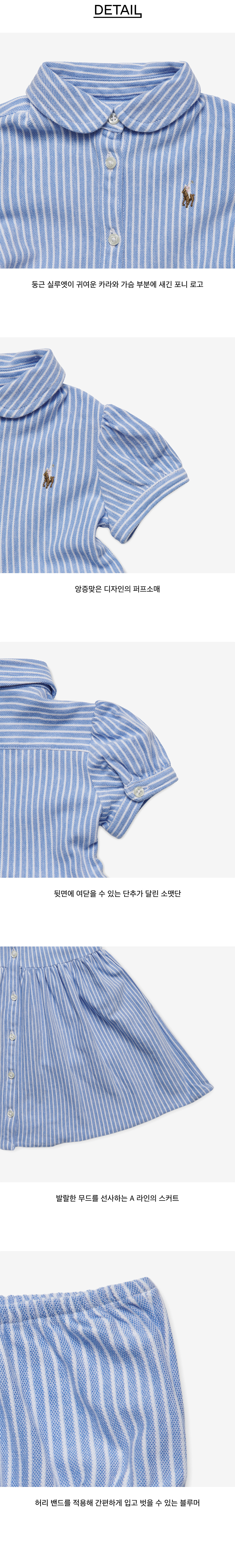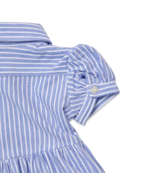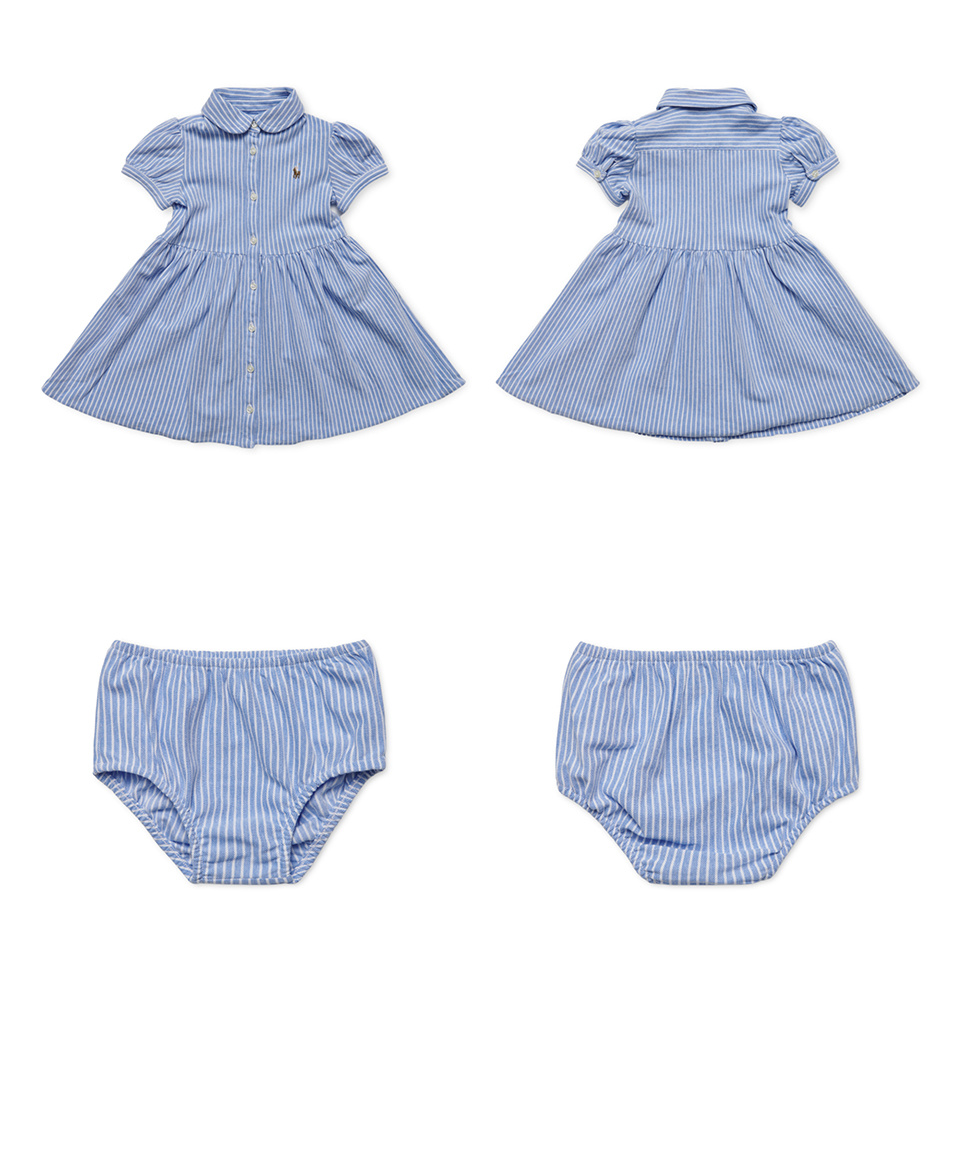 베이비 여아 스트라이프 니트 옥스포드 폴로 드레스 - 블루