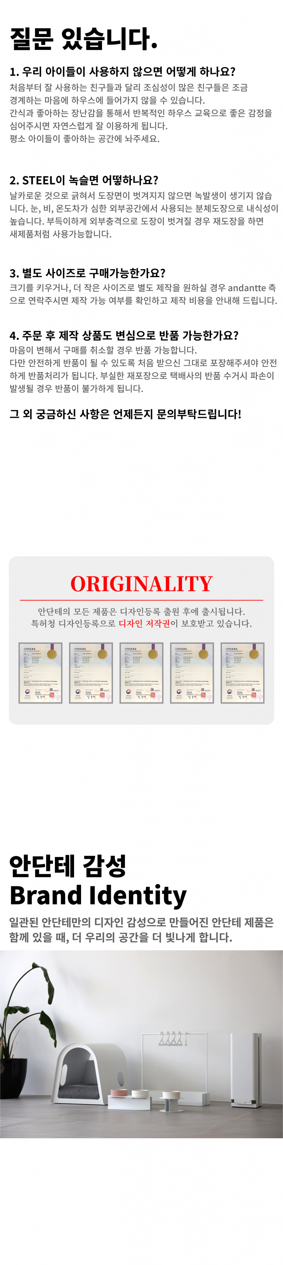 안단테(ANDANTTE)는 반려동물을 위한 프리미엄 브랜드로, 반려동물과 살아가는 공간이 조화롭고 멋진 공간으로 거듭날 수 있도록 연구합니다.