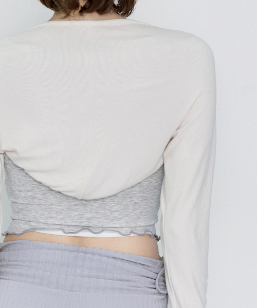 여성 요가복 DEVI-T0124-멜란지오트밀 필라테스 더블버튼 랩 롱슬리브