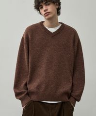 투톤 믹스 코튼 크롭 브이넥 니트 [브라운]