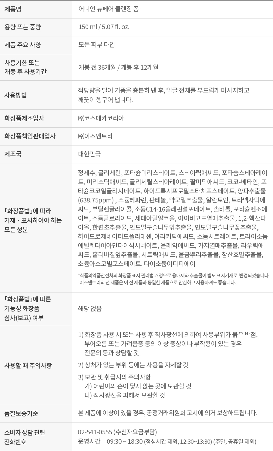 어니언 뉴페어 클렌징폼 150ml(증정: 어니언 플루이드 선 2ml 2EA)