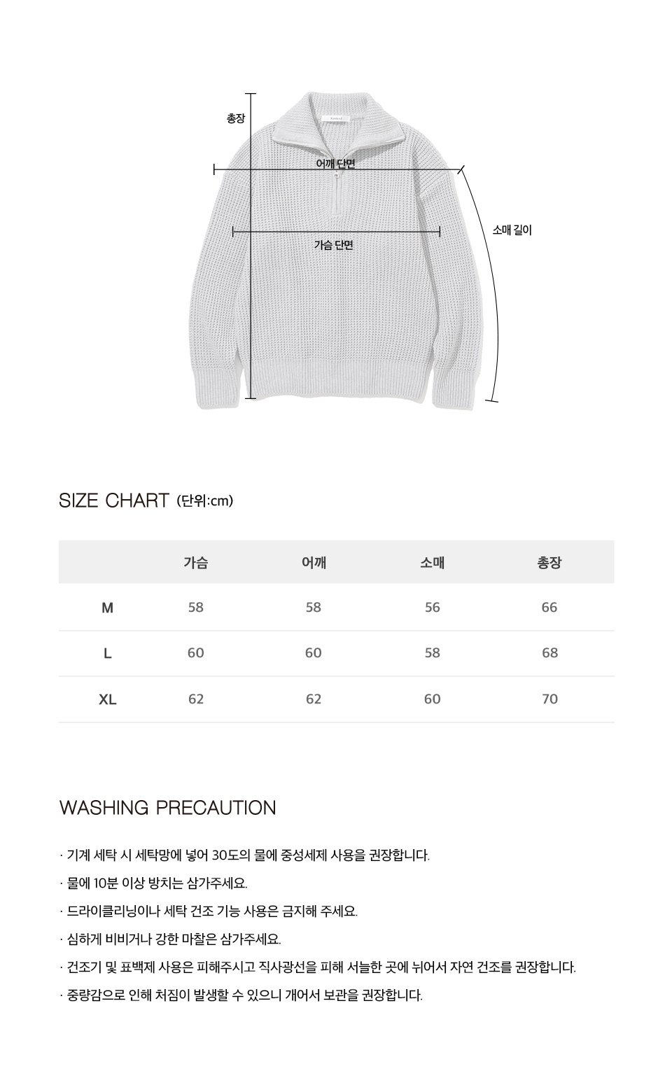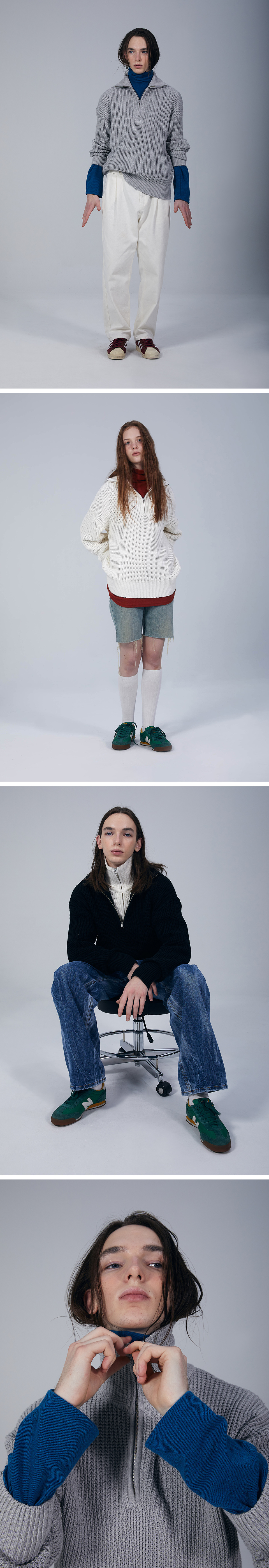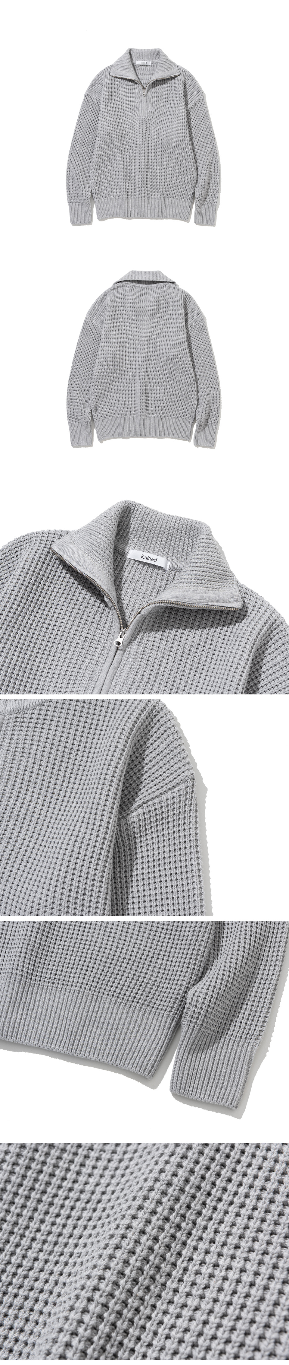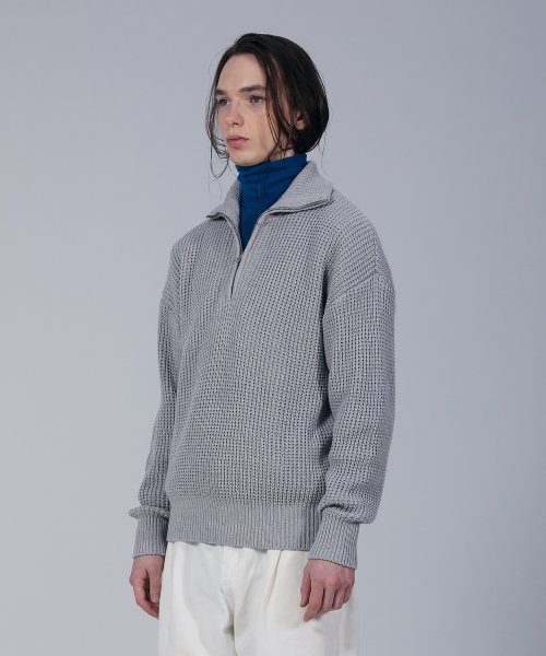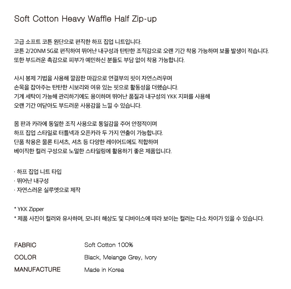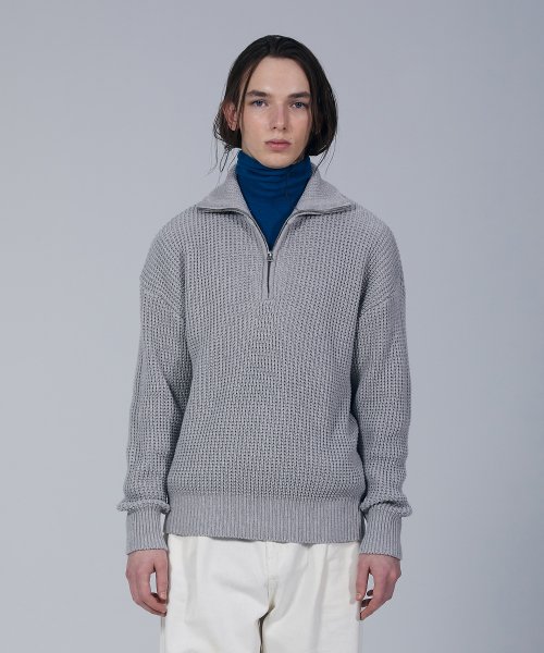 소프트코튼 헤비 와플 하프 집업 니트 MELANGE GREY