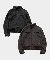 하이넥 버튼 베이직 투웨이 인시전 블루종 크롭 레더 자켓_2COLOR