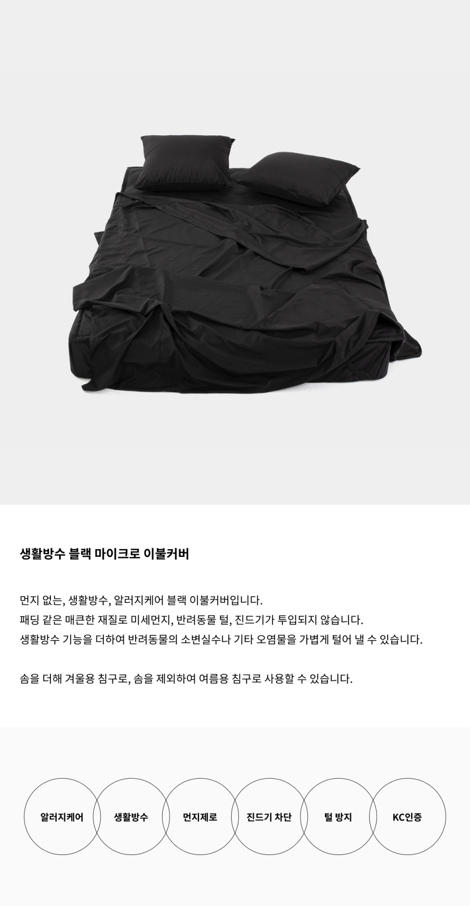 알러지케어 블랙 마이크로 홑겹 매트리스커버