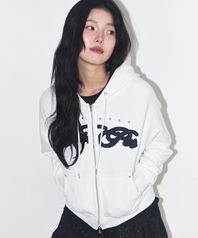 체크 아플리케 후드 집업 화이트