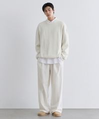 원 턱 와이드 라운지 스웨트 팬츠 [크림]