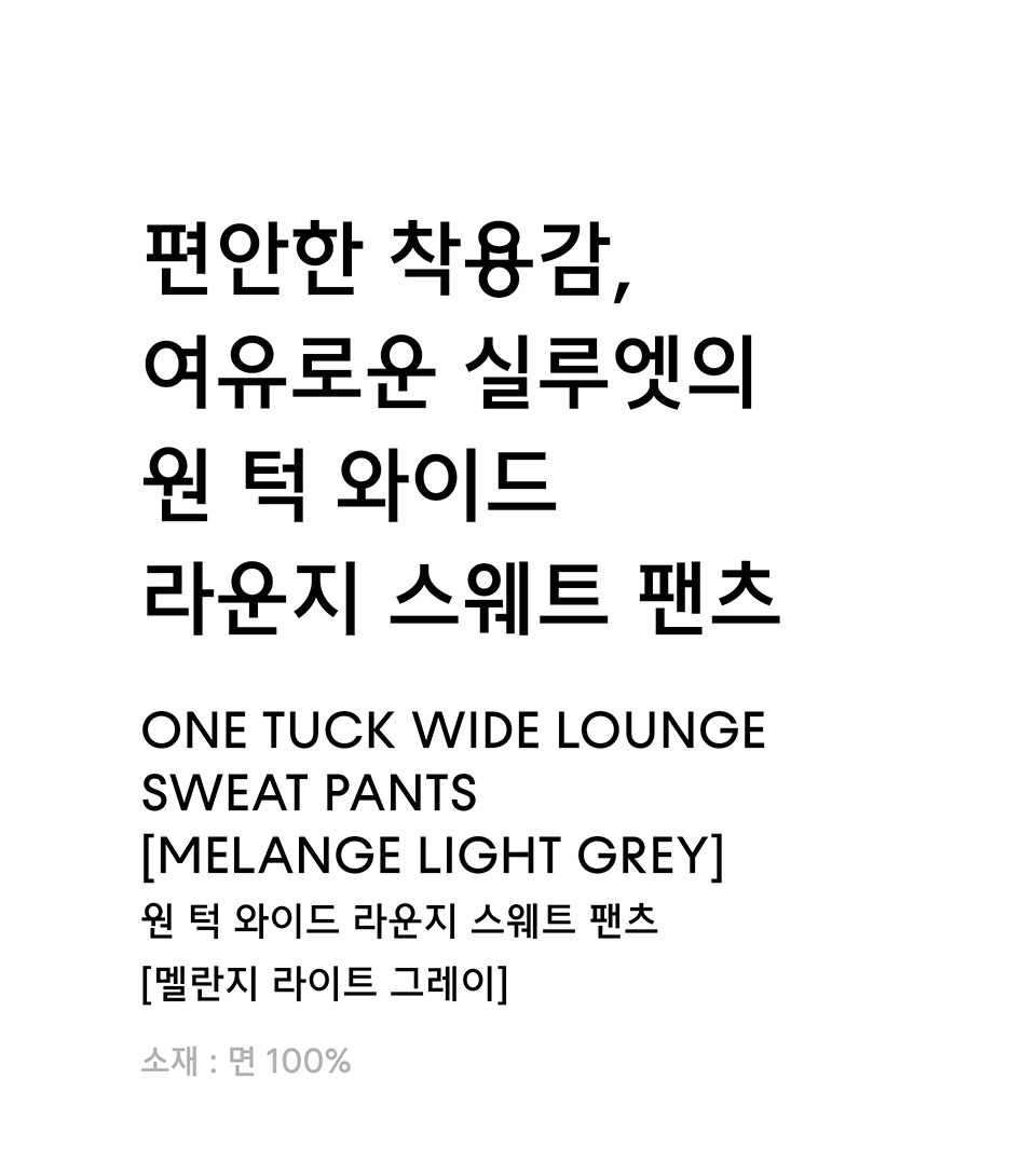 원 턱 와이드 라운지 스웨트 팬츠 [멜란지 라이트 그레이]