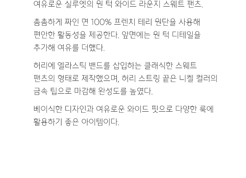 원 턱 와이드 라운지 스웨트 팬츠 [미디엄 그레이]