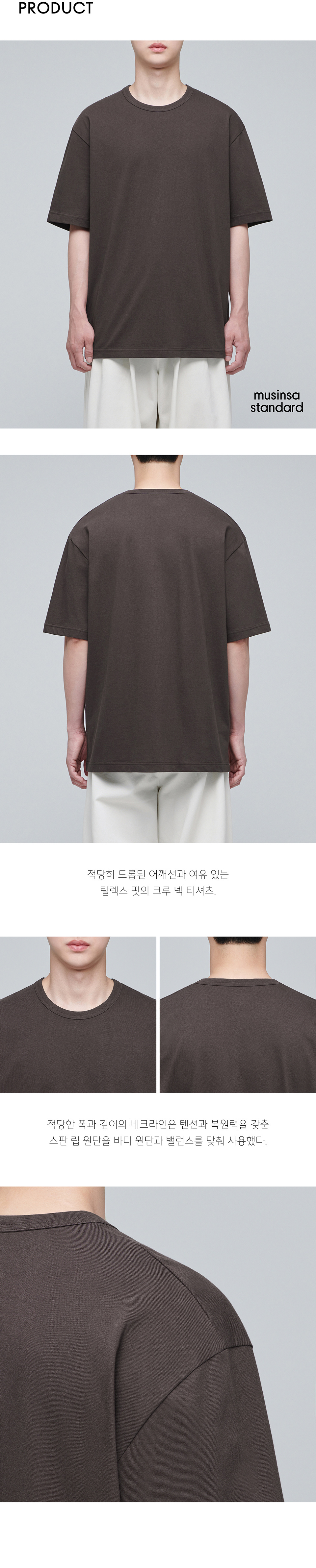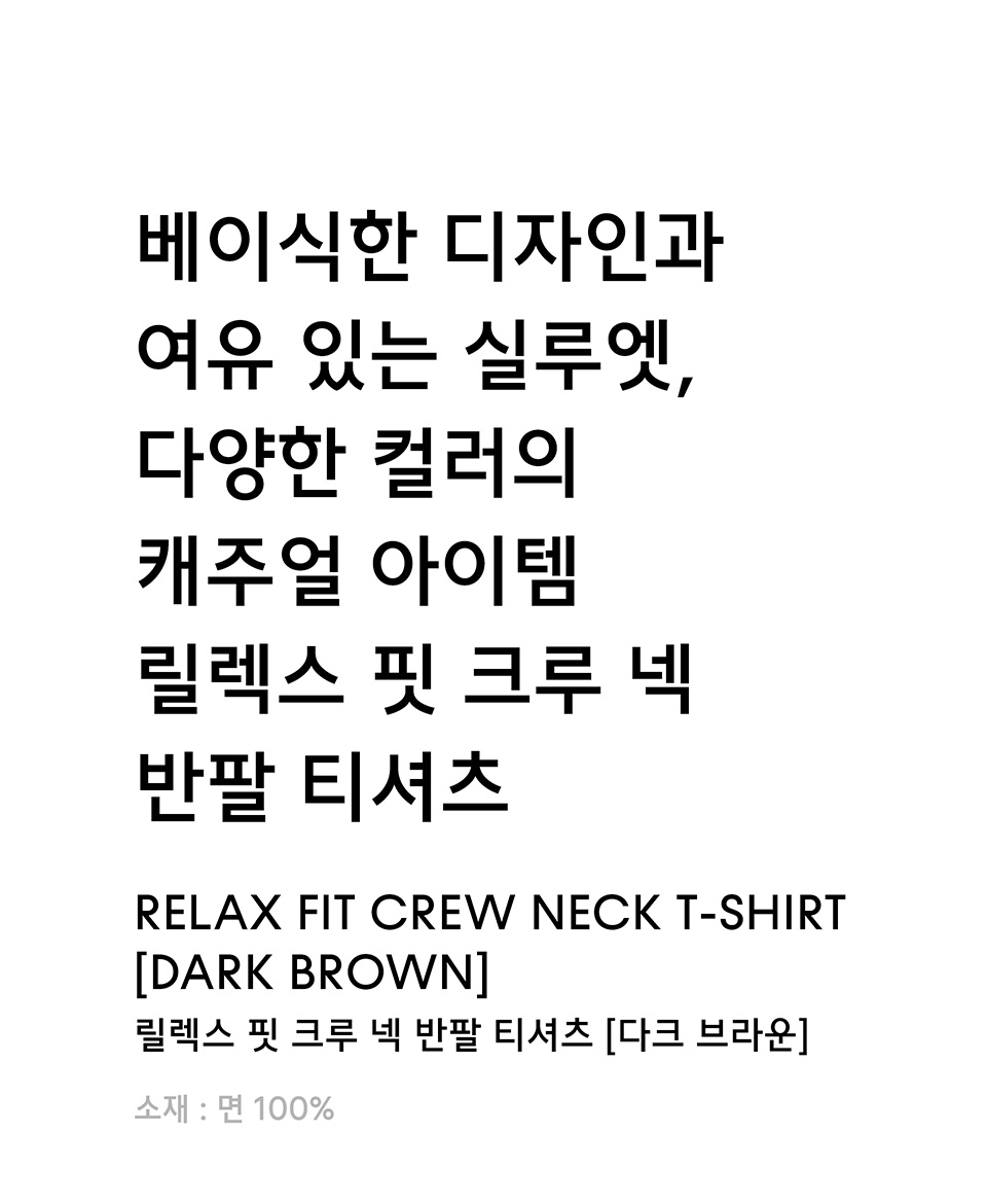 릴렉스 핏 크루 넥 티셔츠 [다크 브라운]