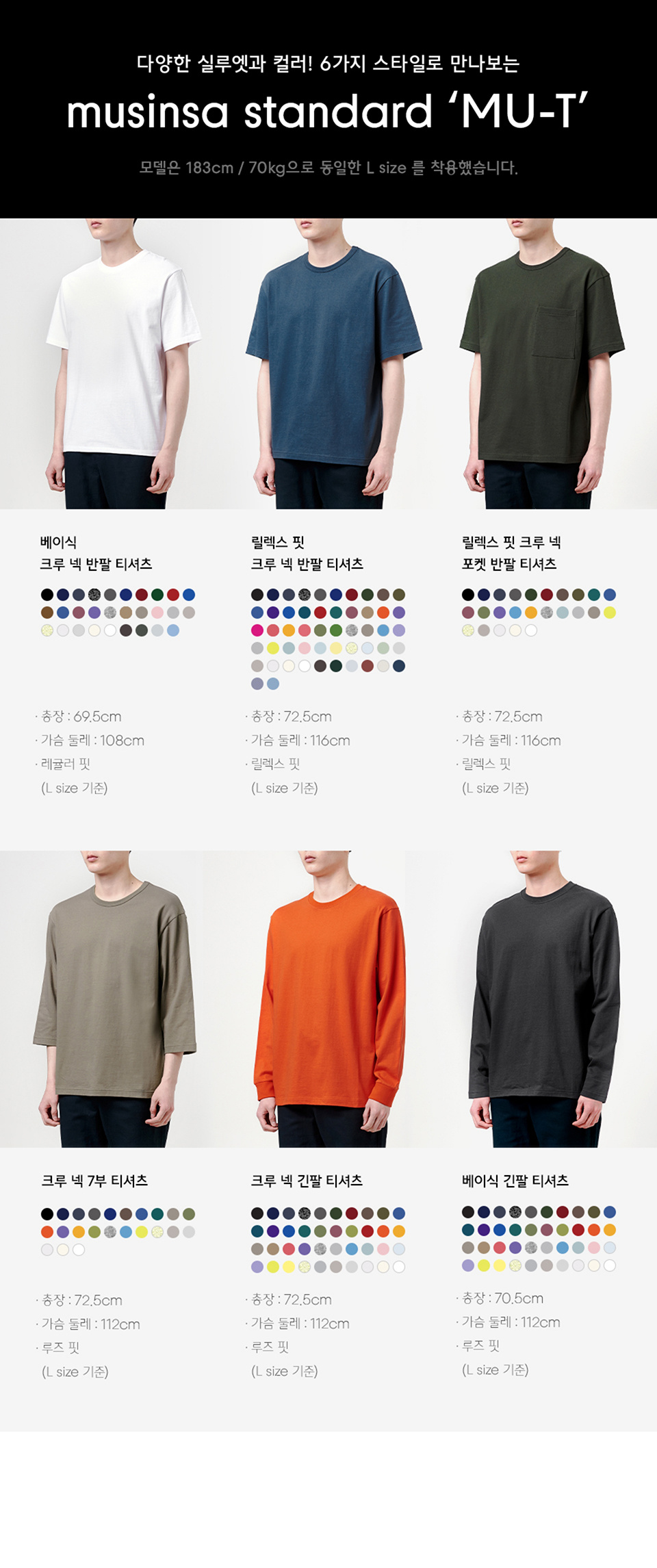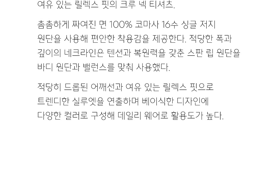 릴렉스 핏 크루 넥 티셔츠 [블랙]