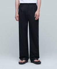 코튼 린넨 투 턱 와이드 팬츠 [블랙]