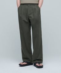 코튼 린넨 투 턱 와이드 팬츠 [카키]