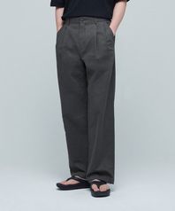 코튼 린넨 투 턱 와이드 팬츠 [건메탈]