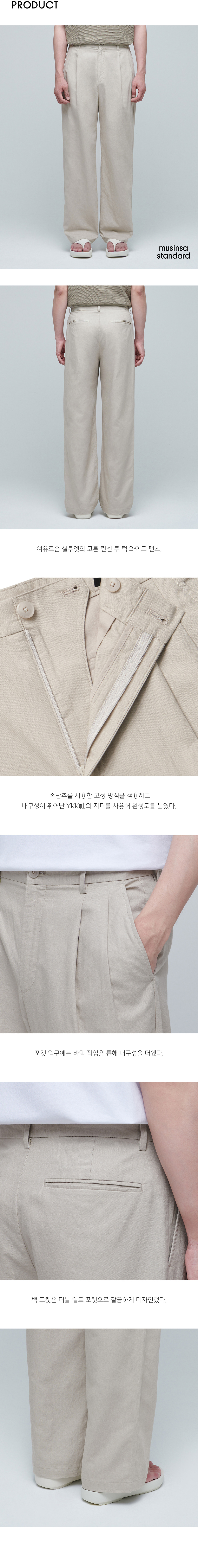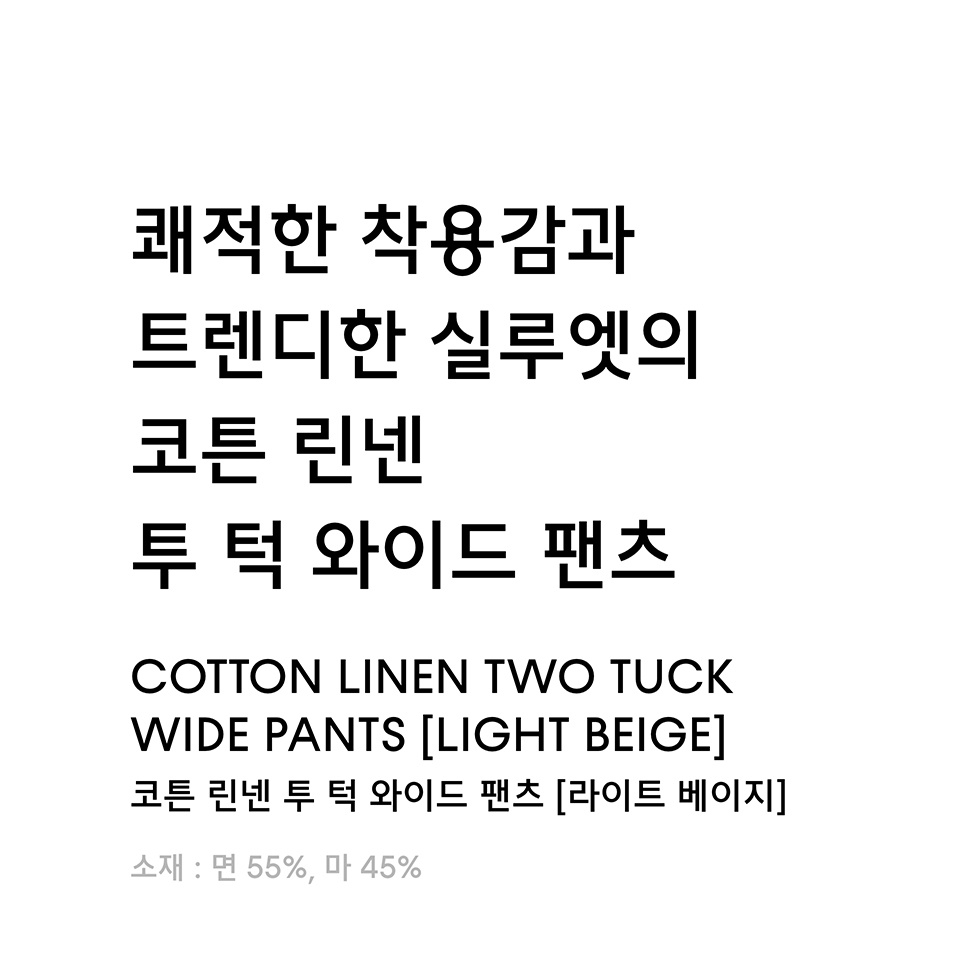 코튼 린넨 투 턱 와이드 팬츠 [라이트 베이지]