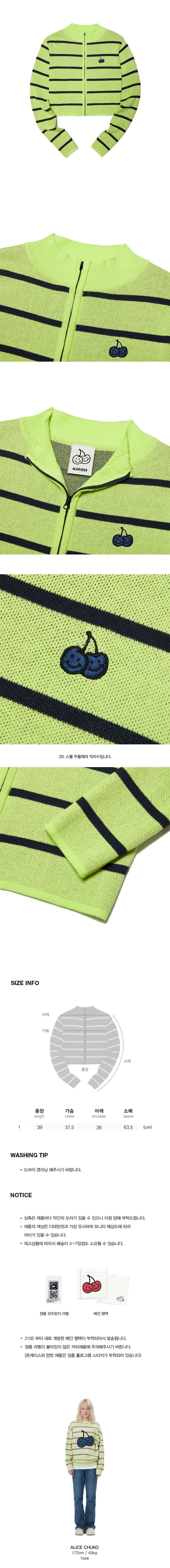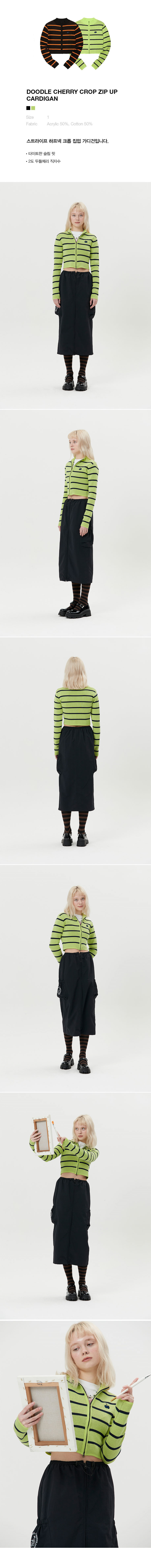 두들 체리 크롭 집업 가디건 [라임]