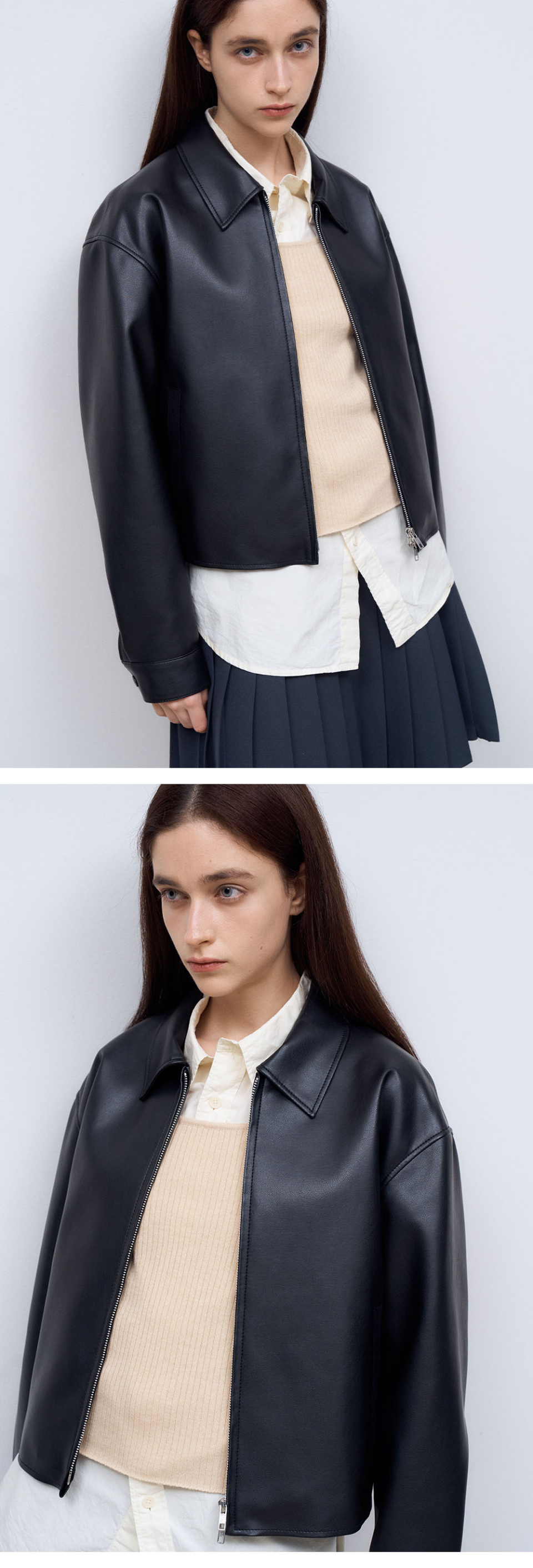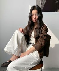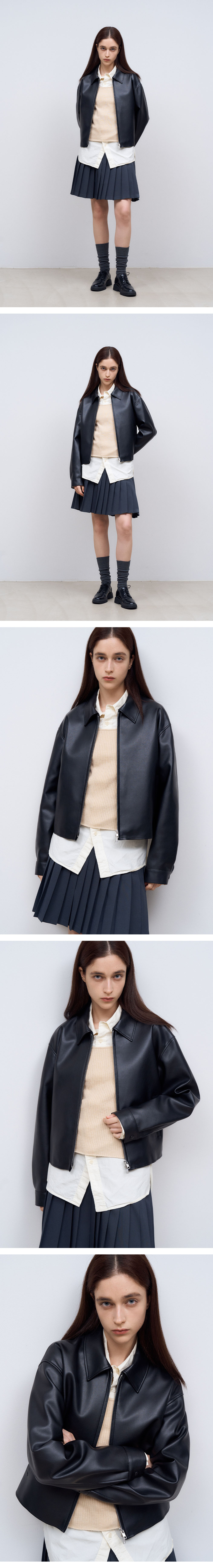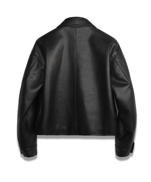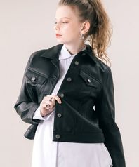 (woman) 워시드 럭스 크롭 레더 자켓_Brown