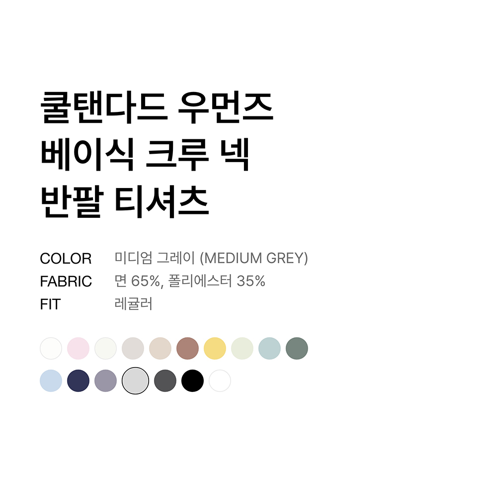 [쿨탠다드] 우먼즈 베이식 크루 넥 티셔츠 [미디엄 그레이]