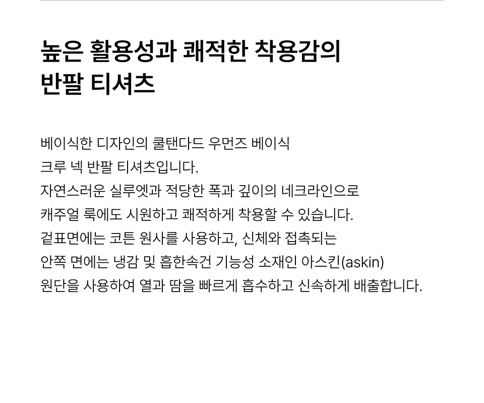 [쿨탠다드] 우먼즈 베이식 크루 넥 티셔츠 [화이트]