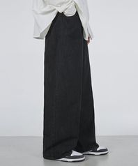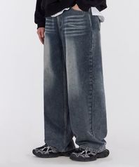 이지 와이드 데님 팬츠 빈티지 워시드 블루
