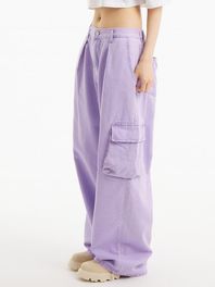 UP-400 와이드 피그먼트 카고팬츠 퍼플