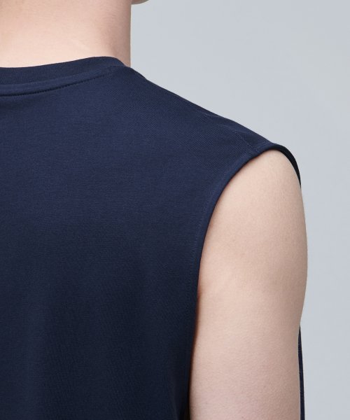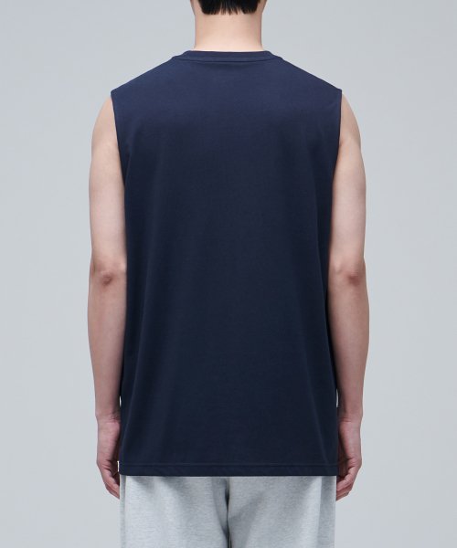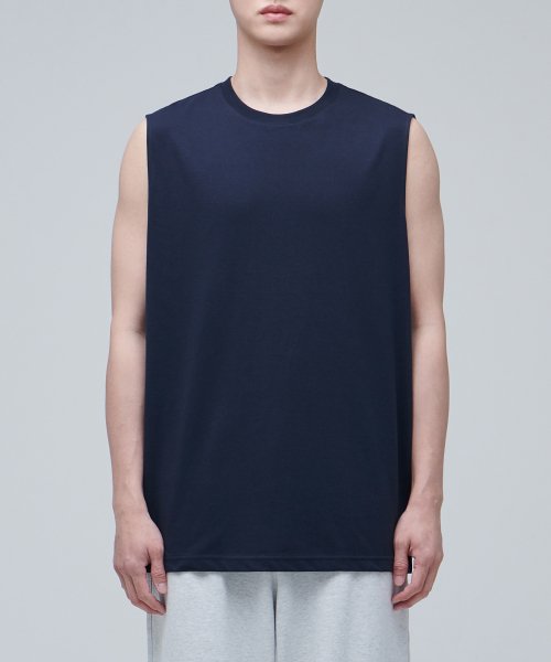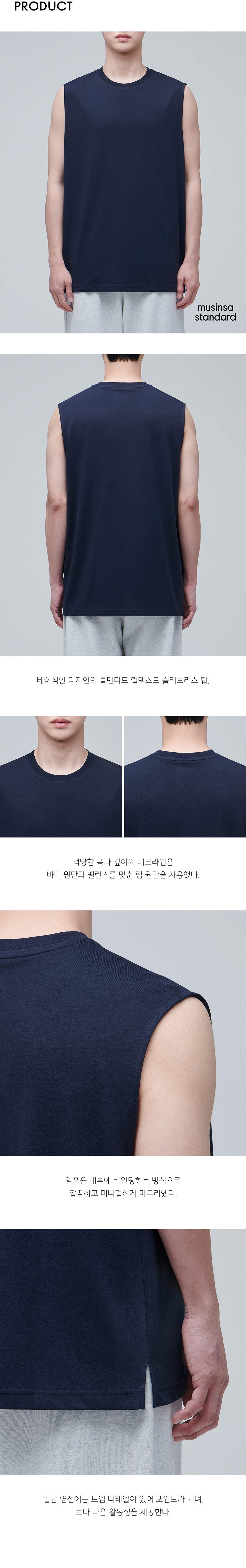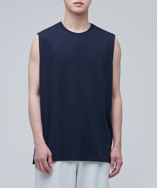 [쿨탠다드] 릴렉스드 슬리브리스 탑 [네이비]