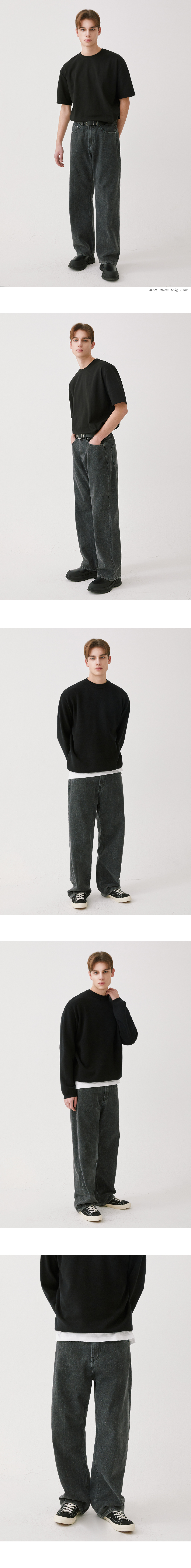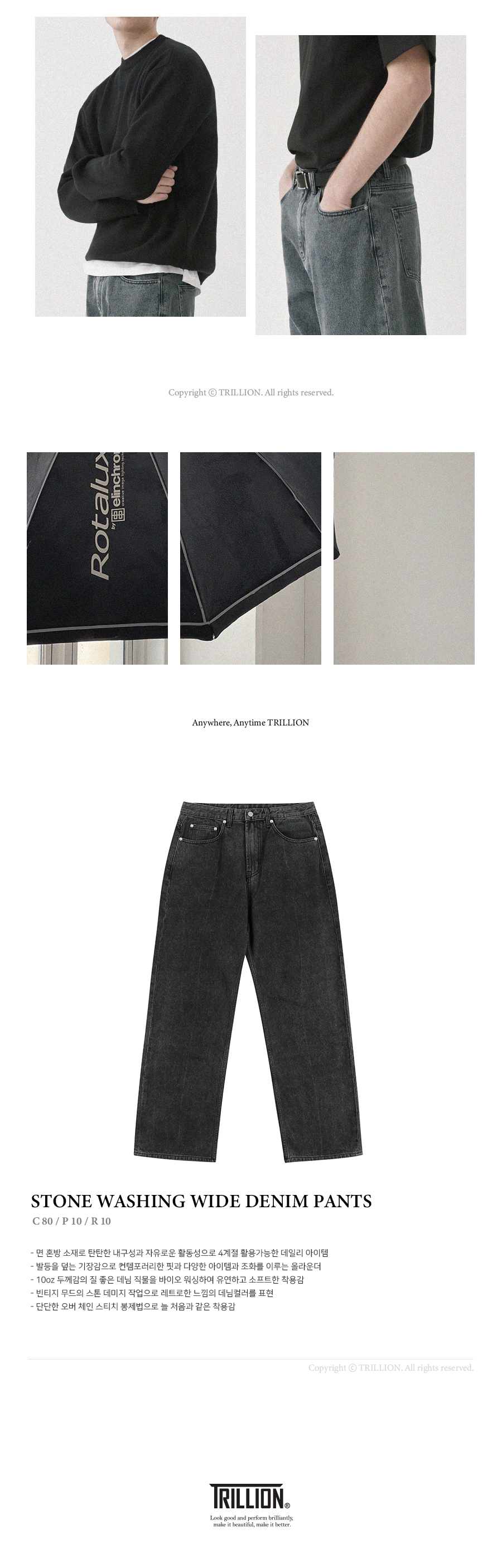 바이오스톤 워싱 와이드 데님 팬츠 (BLACK)