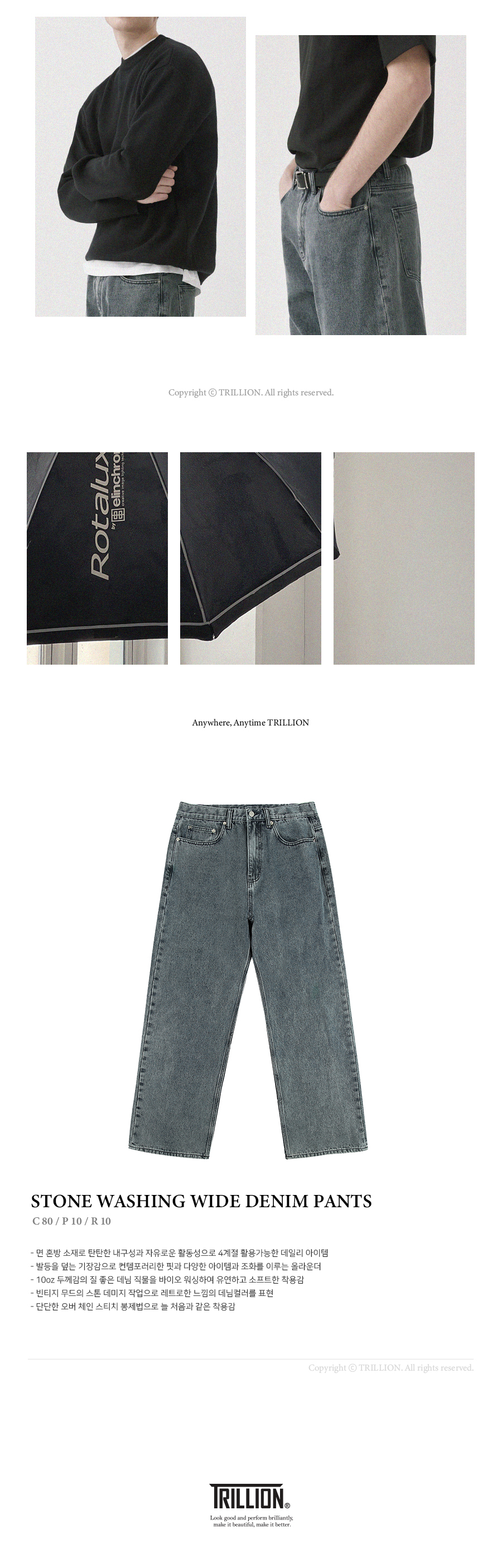 트릴리온(TRILLION)은 클래식, 빈티지, 아웃도어, 어반 등의 스타일을 베이스로 트릴리온만의 컨템포러리 감성을 더해 높은 퀄리티의 제품을 합리적인 가격에 제시합니다. 단 하나의 제품에도 만족감을 느낄 수 있는 가치를 추구합니다.
