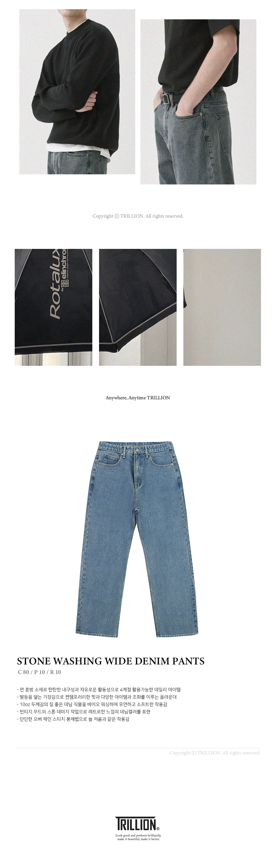 트릴리온(TRILLION)은 클래식, 빈티지, 아웃도어, 어반 등의 스타일을 베이스로 트릴리온만의 컨템포러리 감성을 더해 높은 퀄리티의 제품을 합리적인 가격에 제시합니다. 단 하나의 제품에도 만족감을 느낄 수 있는 가치를 추구합니다.