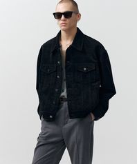 벨벳 텍스쳐 데님 트러커 자켓 (블랙)