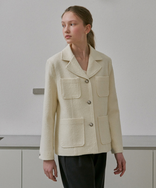 [알로하 PICK] (woman) 하이넥 뮤트 하프 자켓_Ivory