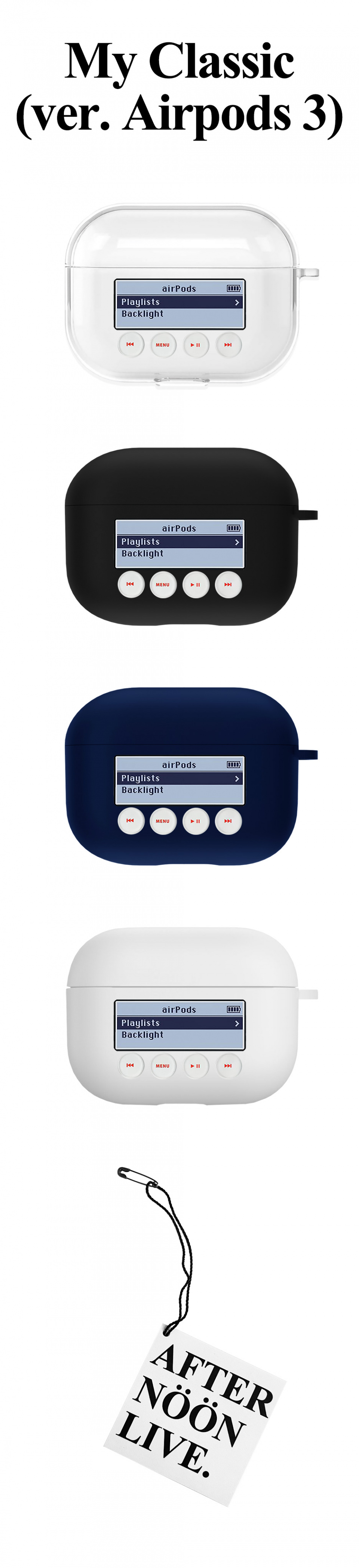 애프터눈라이브의 에어팟 케이스입니다. 매트한 블랙 컬러 케이스로 PC 소재로 제작되어 충격 흡수력이 뛰어납니다. 키링과 함께할 수 있도록 탄탄한 고리가 부착되어있습니다.