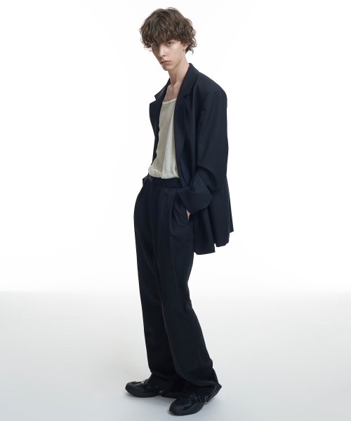 [INSILENCE X KKST] 더블 플리츠 벨티드 울 팬츠 BLACK