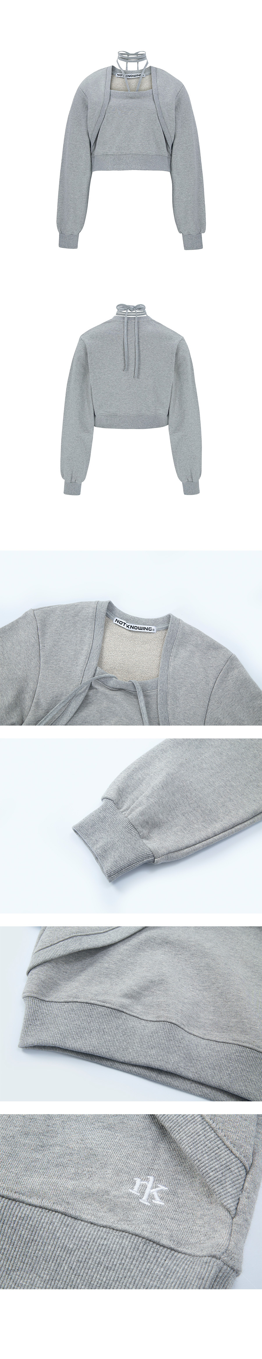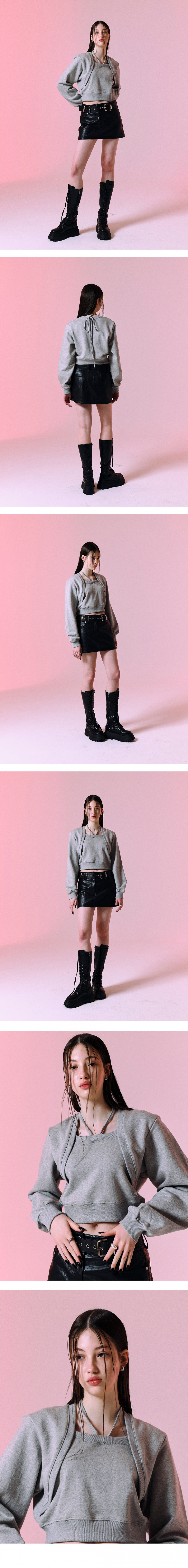 스퀘어넥 실루엣에 볼레로를 레이어링한듯한 스타일의 스웨트셔츠입니다.