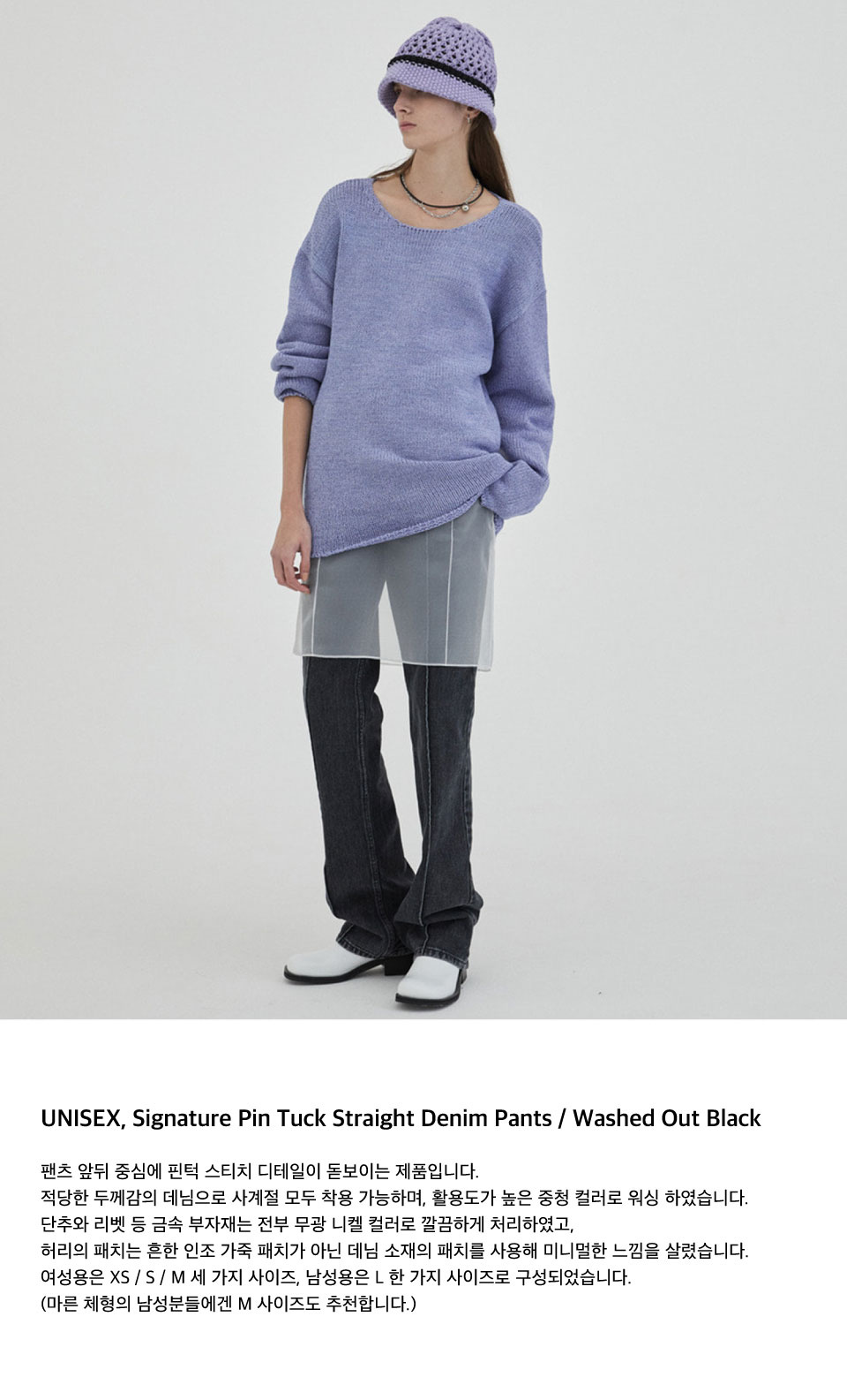 UNISEX Signature Pin Tuck Straight Denim Pants [Washed Out Black]