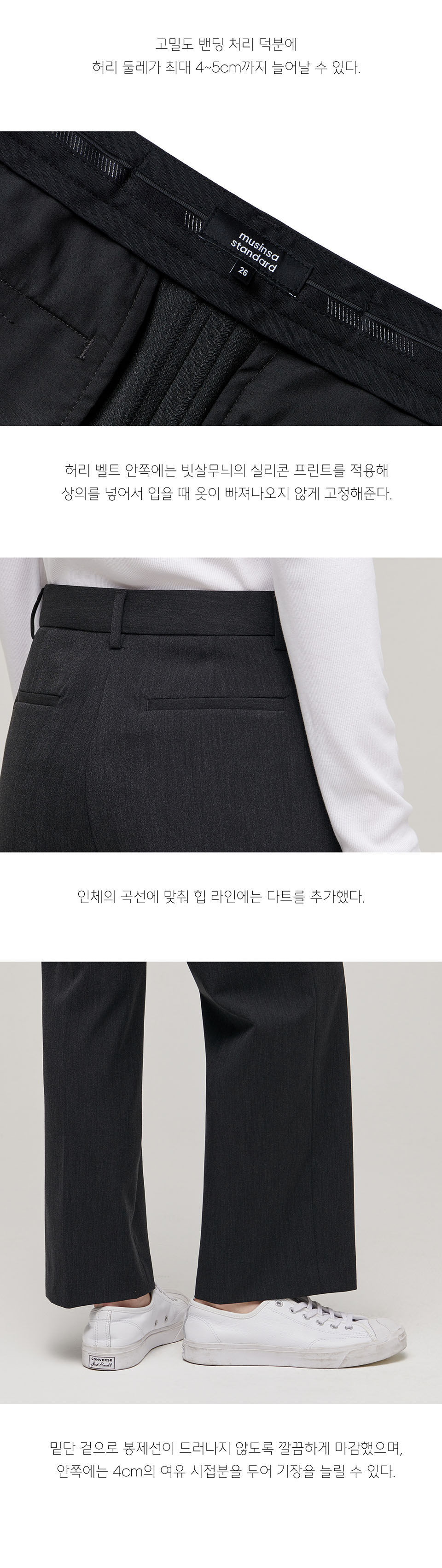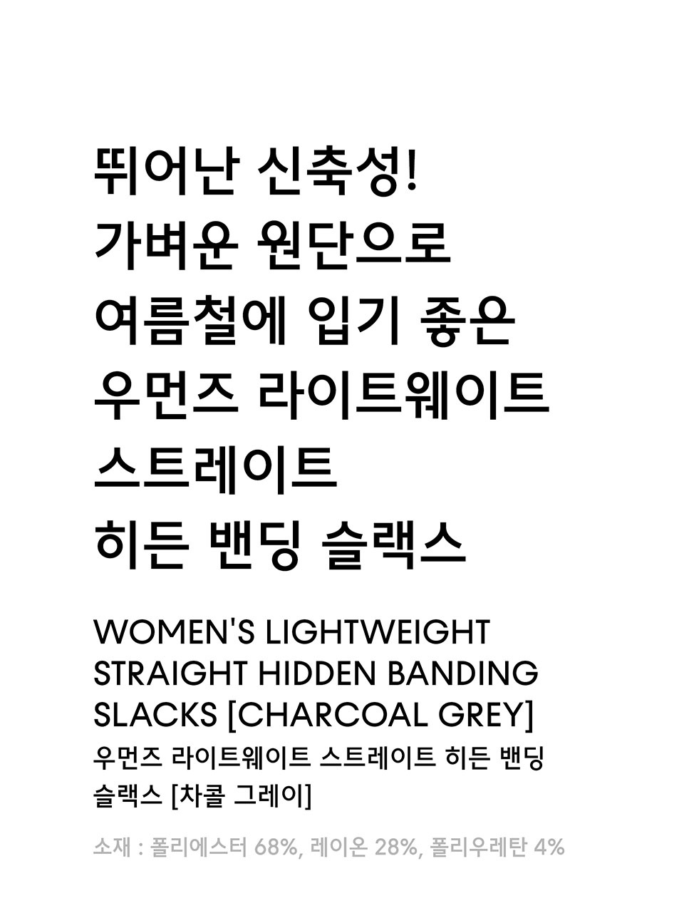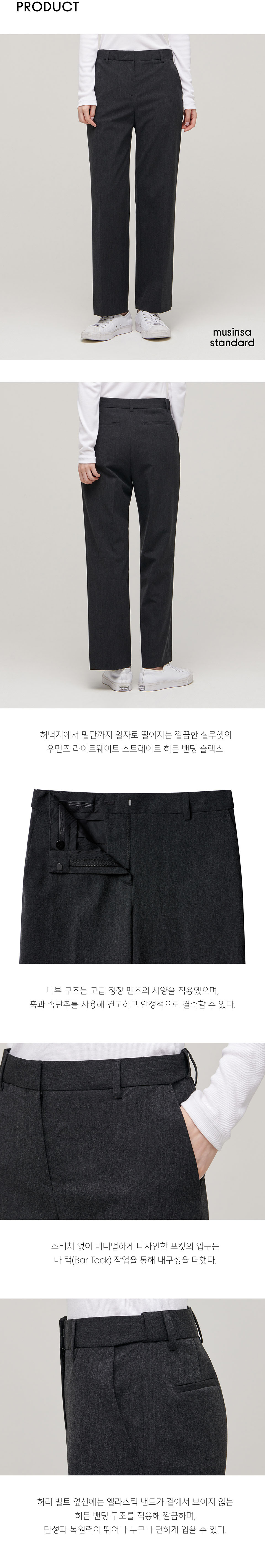 우먼즈 라이트웨이트 스트레이트 히든 밴딩 슬랙스 [차콜 그레이]