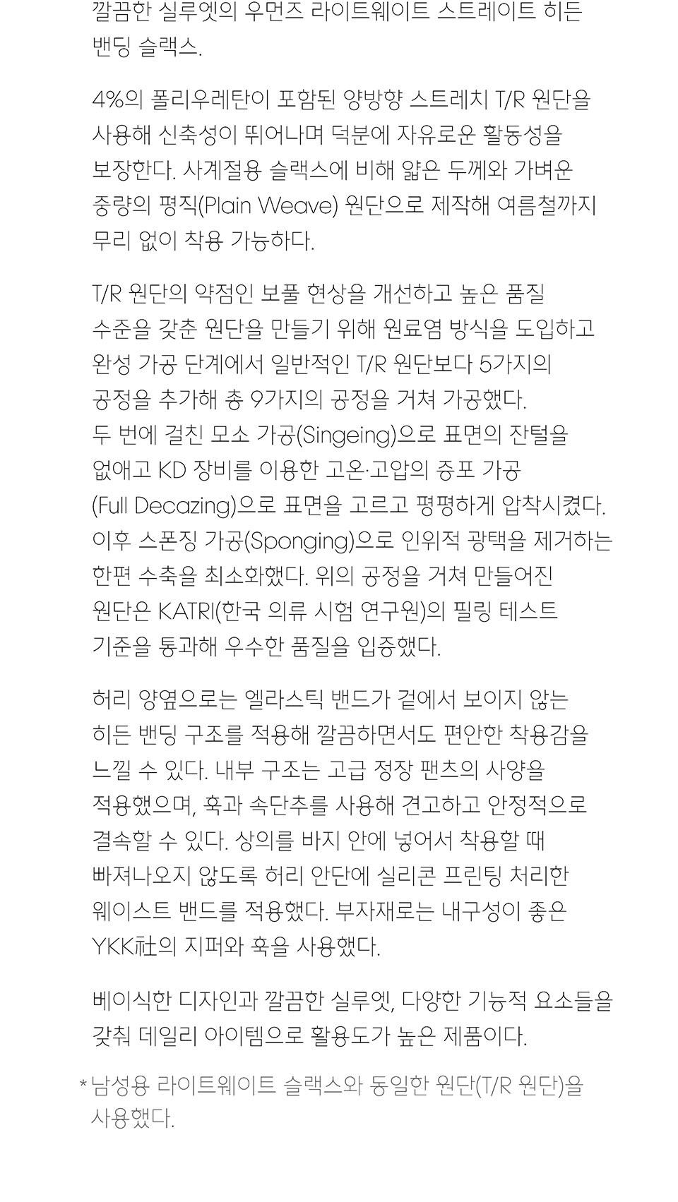 우먼즈 라이트웨이트 스트레이트 히든 밴딩 슬랙스 [블랙]