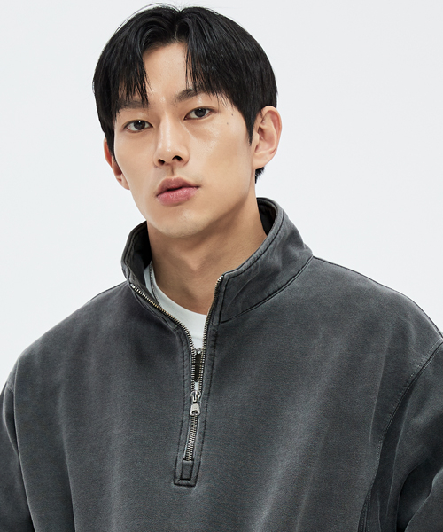 860G 피그먼트 하프 짚업-스톤 네이비-