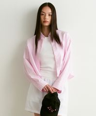 우먼즈 스트라이프 오버사이즈 크롭 포플린 셔츠 [핑크]